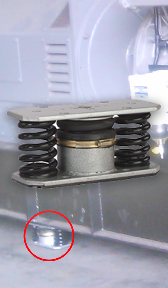 - Combines spring isolation with viscous damping